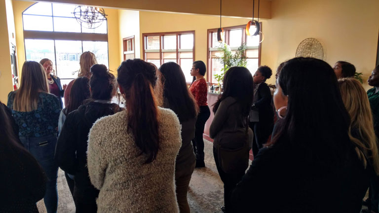Following the conversational portion of the outing, the students broke into smaller groups for tours of the Indianapolis East location.